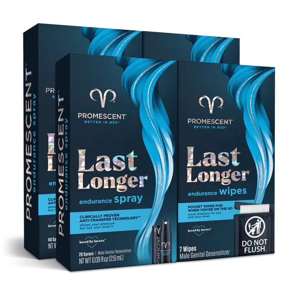 Promescent Endurance Duo is designed for flexibility and confidence in every situation. Keep Delay Spray in your nightstand for planned intimacy and carry Delay Wipes in your wallet for discreet, anytime use.