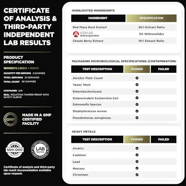 Designed for modern women in Bangladesh, this natural formula blends Maca, Ashwagandha, and Ginseng to help relieve stress, enhance mood, and boost natural libido. Each gummy is an easy daily step toward balanced energy and confidence — without pills or discomfort.