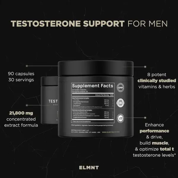 Long workdays, stress, and age can lower men’s testosterone and overall performance. ELMNT Health Testosterone Support combines natural extracts like Tongkat Ali, Tribulus, and Ashwagandha to help restore balance, improve energy, and support muscle health and vitality naturally.