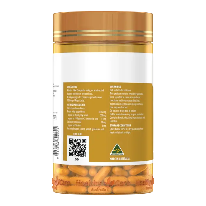 Experience the royal secret to health and longevity. Healthy Care Premium Royal Jelly is a concentrated nutritional supplement derived from the exclusive diet of the queen bee — rich in proteins, vitamins, amino acids, and the bioactive compound 10-HDA. It supports immune strength, energy production, and overall vitality, helping you maintain wellness naturally every day.