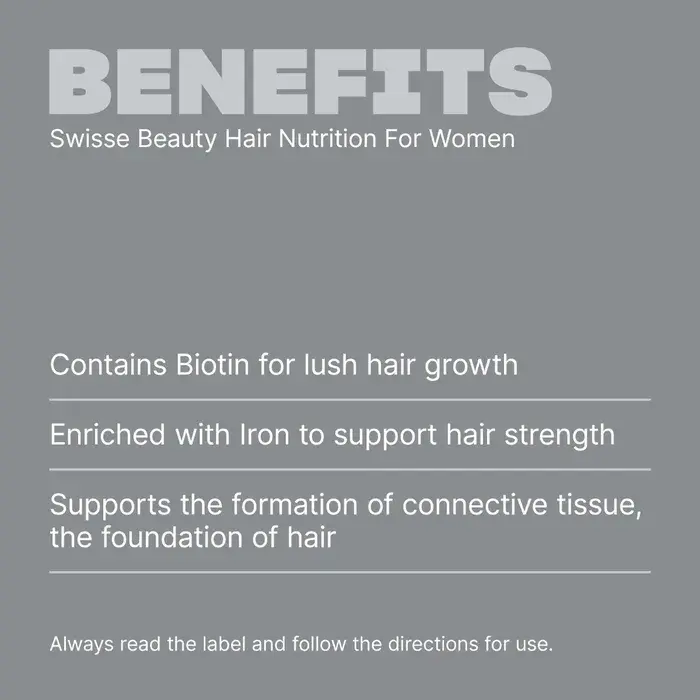 Swisse Hair Nutrition for Women nourishes the hair follicles with essential vitamins and minerals to improve hair structure and shine, while addressing common lifestyle-related deficiencies in Bangladesh.