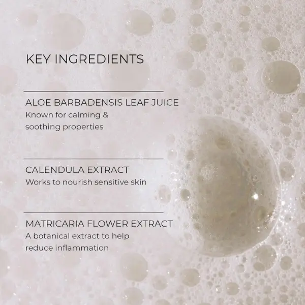 Aloe Barbadensis Leaf Juice, Calendula Extract, and Matricaria Flower Extract help soothe and support sensitive skin.